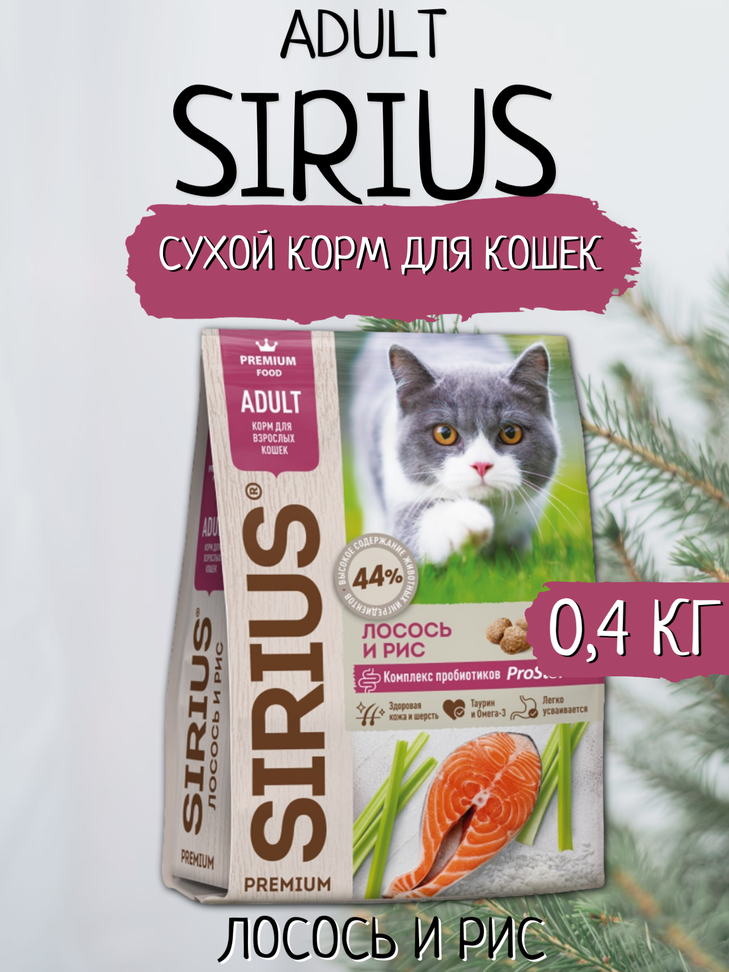 Sirius Корм сухой для взрослых кошек, с лососем и рисом, 400 гр.