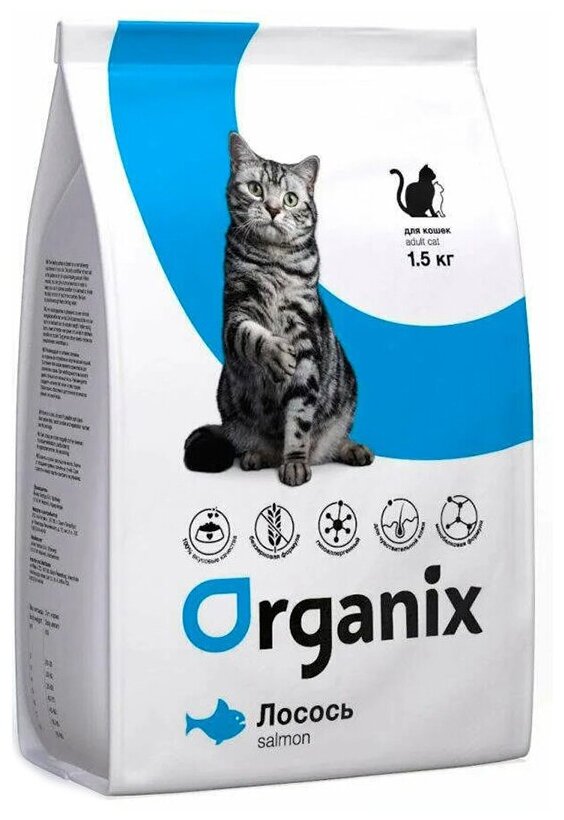 Organix Adult Cat Salmon - Сухой корм для кошек со свежим лососем и рисом pp20597 1,5 кг