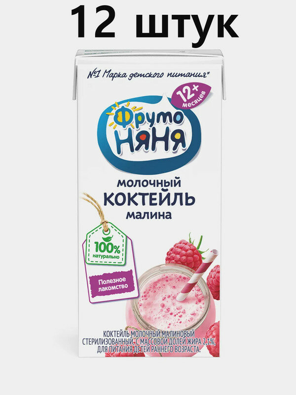 ФрутоНяня Молочный коктейль Малина для детей с 12 мес12х200 мл