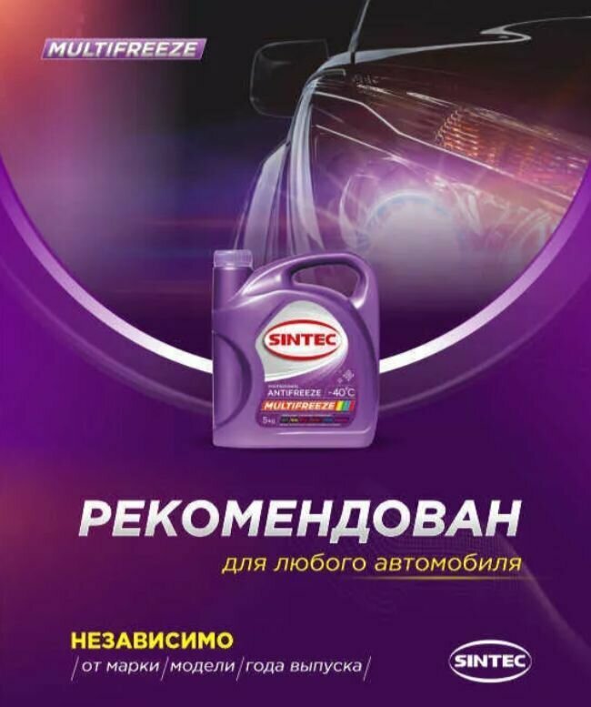 SINTEC MULTIFREEZE -40 универсальный лобридный антифриз 5кг для двигателя автомобиля, охлаждающая жидкость синтек в авто, фиолетовый, готовый к применению