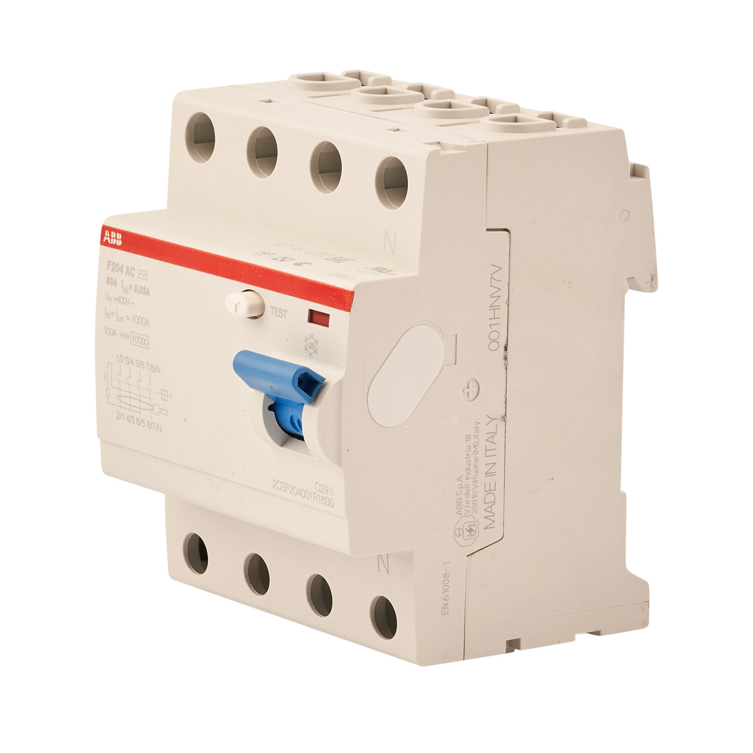 АББ F204 УЗО 4P 63А тип АС 30мА / ABB F204 устройство защитного отключения 4 полюса 63А хар-ка АС 30мА