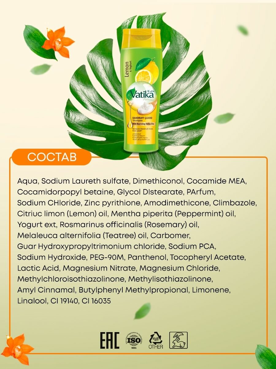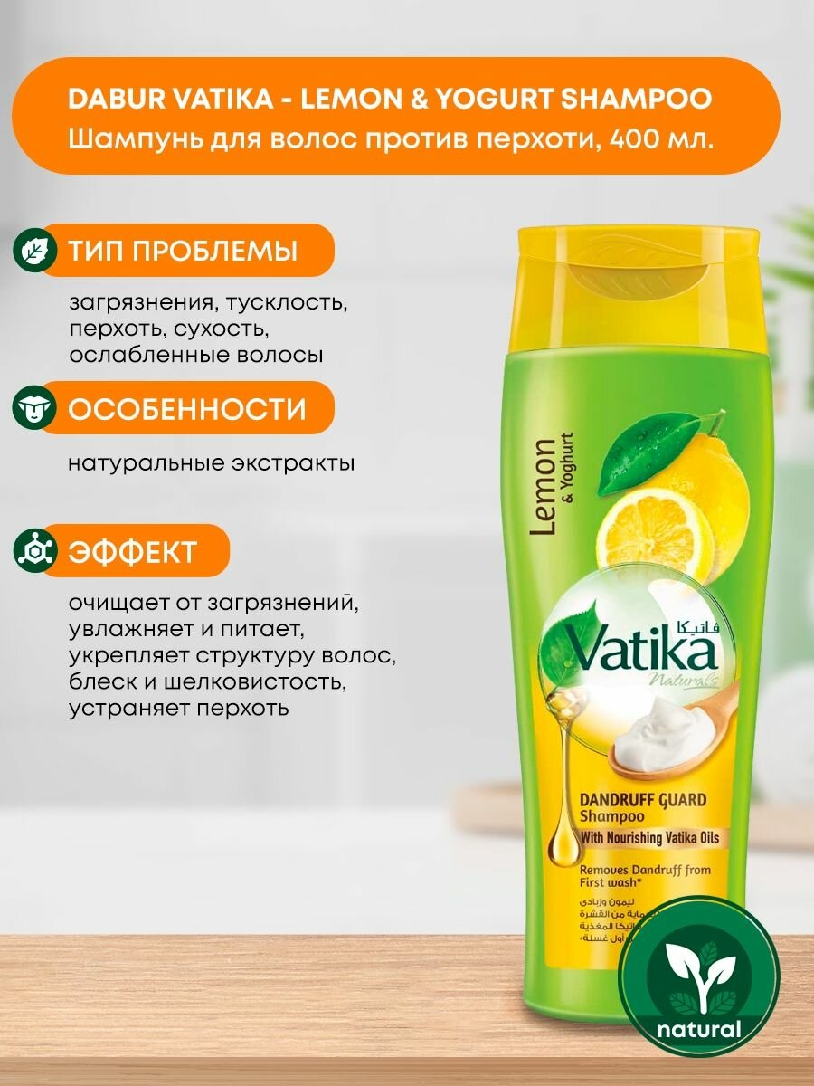 Dabur Vatika Шампунь от перхоти с лимоном и йогуртом /Lemon & Yoghurt/ Дабур Ватика (Dandruff guard) 400 мл