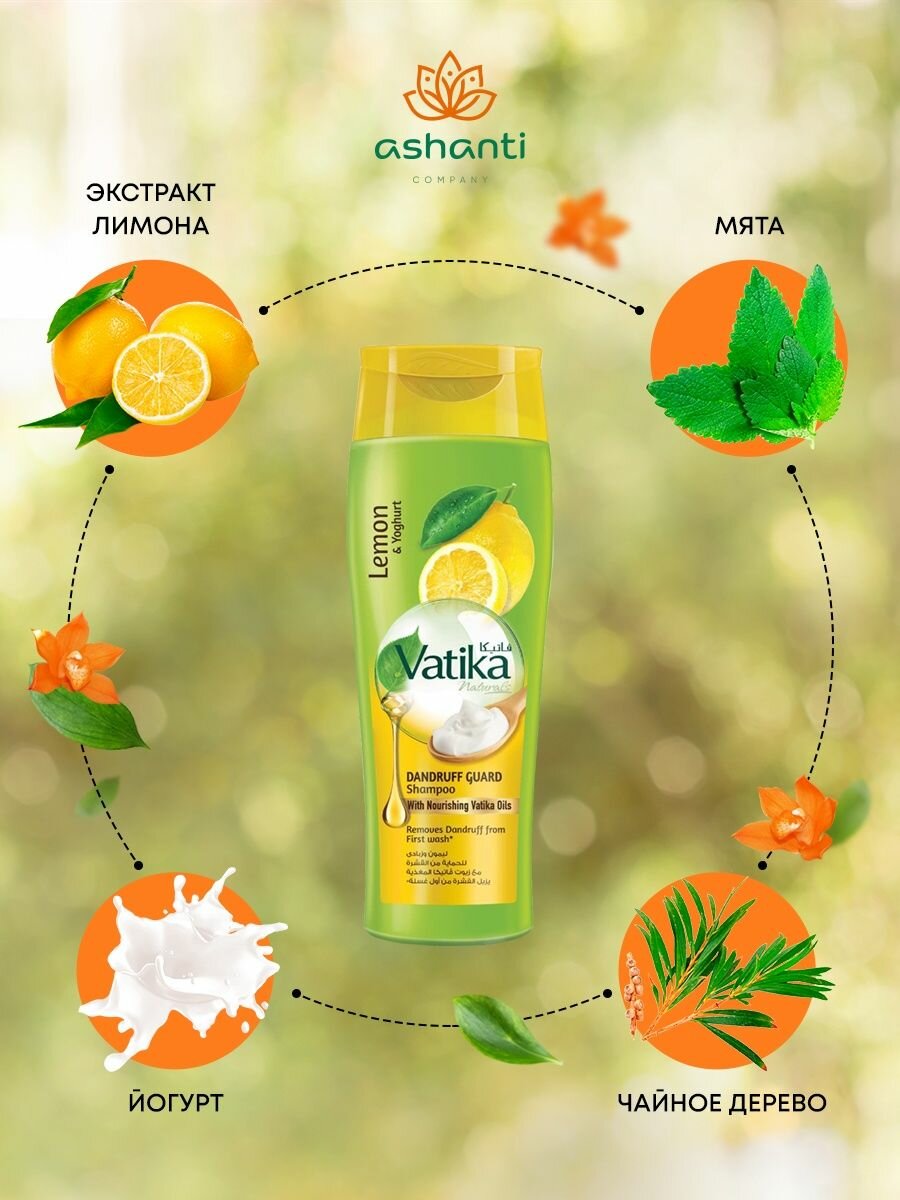 Vatika LEMON AND YOGHURT Dandruff Guard Shampoo, Dabur (Ватика лимон И йогурт Шампунь от перхоти, Дабур), 400 мл.