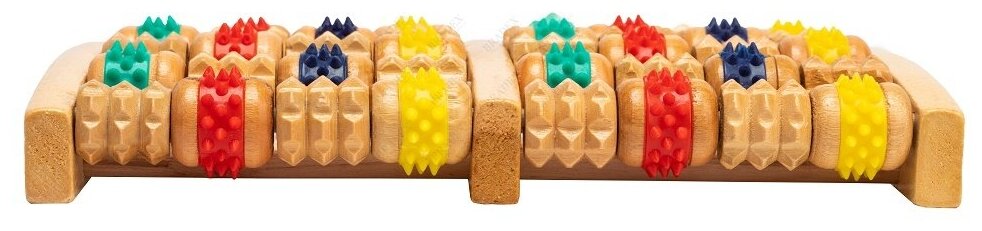Деревянный массажер для ног с шипами и дополнительными роликами, BRADEX