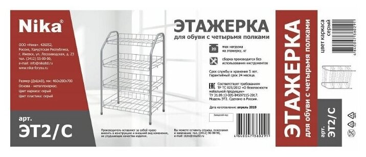 СохранитьПодставка под обувь разборная металлическая Nika ЭТ2 (70*46,5*30 см 4 полки) серая интересное: