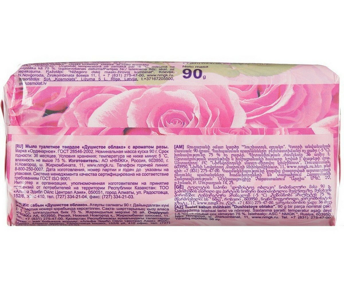 Ниже Вы можете прочитать отзывы на Мыло кусковое туалетное Душистое облако с ароматом розы, 90г, 1шт., ознакомится с подробными характеристиками, посмотреть интересные обзоры и фотографии на Мыло кусковое туалетное Душистое облако с ароматом розы, 90г, 1шт..