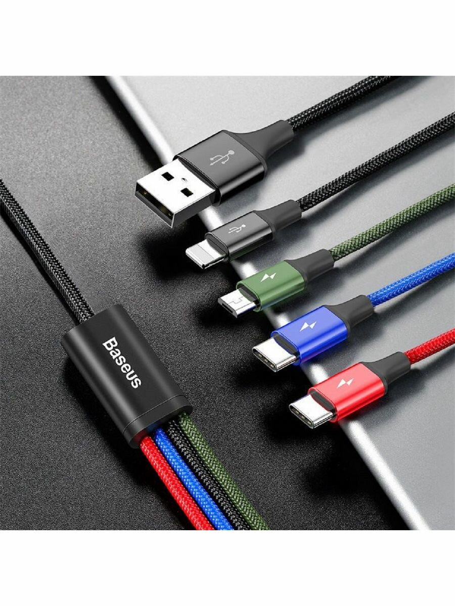 Кабель Baseus 4 in 1 Rapid Series USB - microUSB/Lightning/2xUSB Type-C (CA1T4-B01), 1.2 м, черный