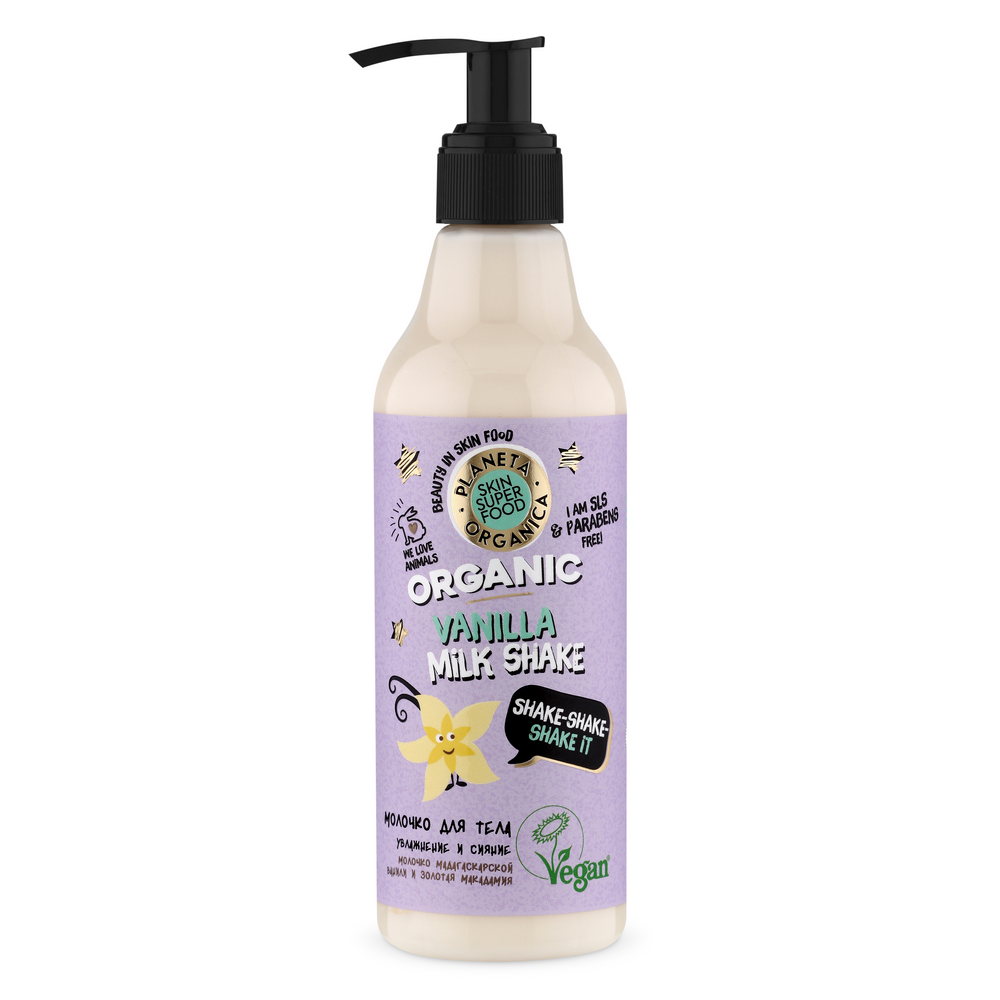 Planeta Organica Молочко для тела Skin Super Food Shake-shake-shake it Organic vanilla milk shake, 250 мл