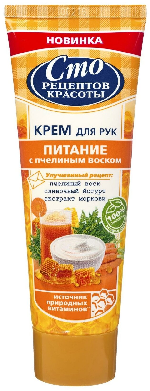 Крем для рук Сто рецептов красоты Питание с пчелиным воском 80 мл