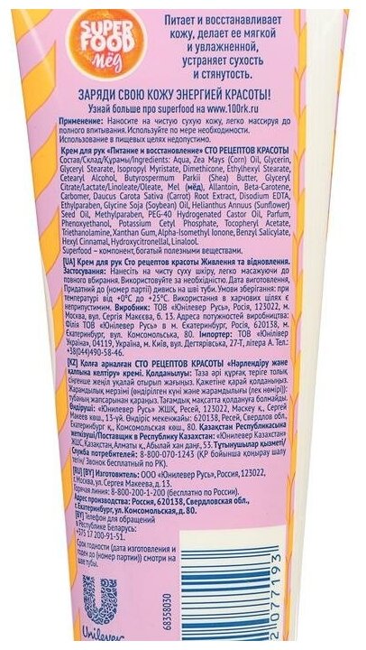 Крем для рук Сто рецептов красоты Питание и восстановление, 80 мл (34481407)