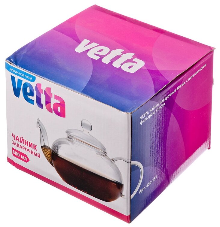 Vetta Чайник заварочный 600мл, с металлическим фильтром, стекло 850-157 .