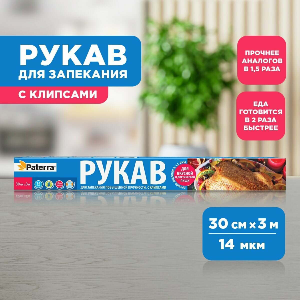 Рукав для запекания в духовке PATERRA 30 см, 3 м, в футляре, 15 мкм с термостойкими клипсами, от -80 209-009