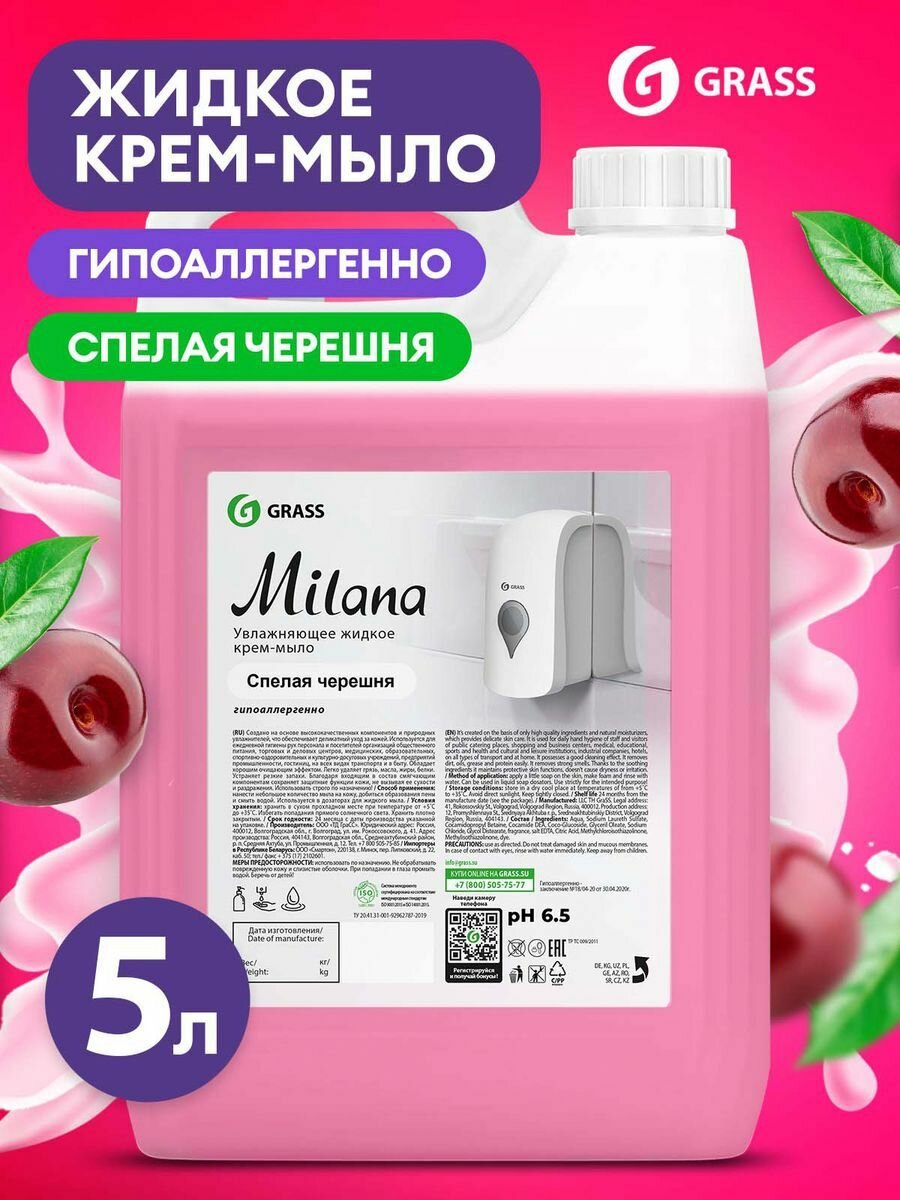Мыло Жидкое Жидкое Крем-Мыло Milana Спелая Черешня 5кг Grass 126405 GraSS арт. 126405