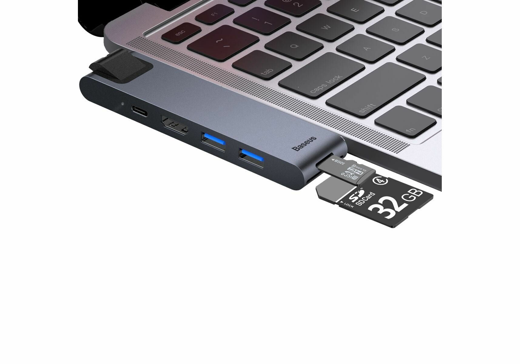 Переходник Baseus Thunderbolt C+ Pro 7in1 2USB/1C/HDMI/SD/Micro SD/RJ45 (CAHUB-L0G) серый