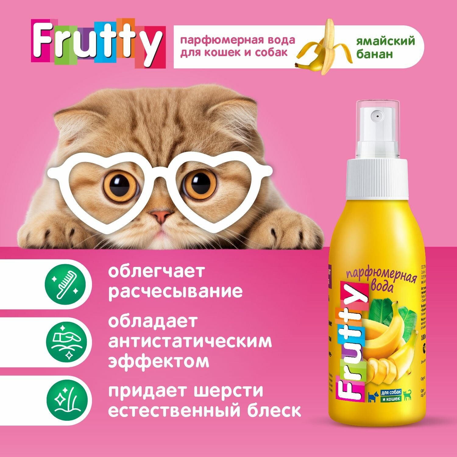 Frutty парфюмерная вода, спрей для расчесывания, от колтунов Банан для собак и кошек, 100 мл