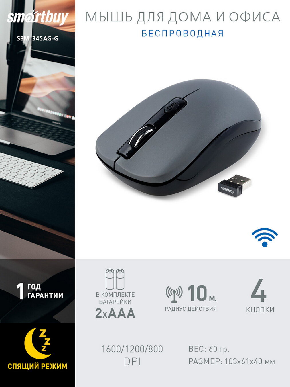 Мышь беспроводная Smartbuy ONE 345AG (SBM-345AG-G) серая