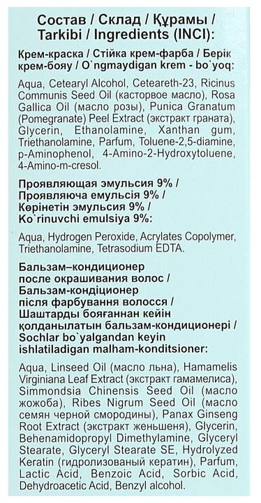 | Плюсы: | Количество достаточно для волос средней длины, хорошо закрашивает седину |