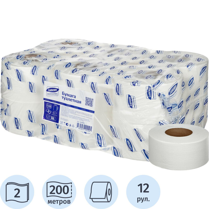 Бумага туалетная в рулонах Luscan Professional 2-слойная 12 рулонов по 200 метров (арт.880886)
