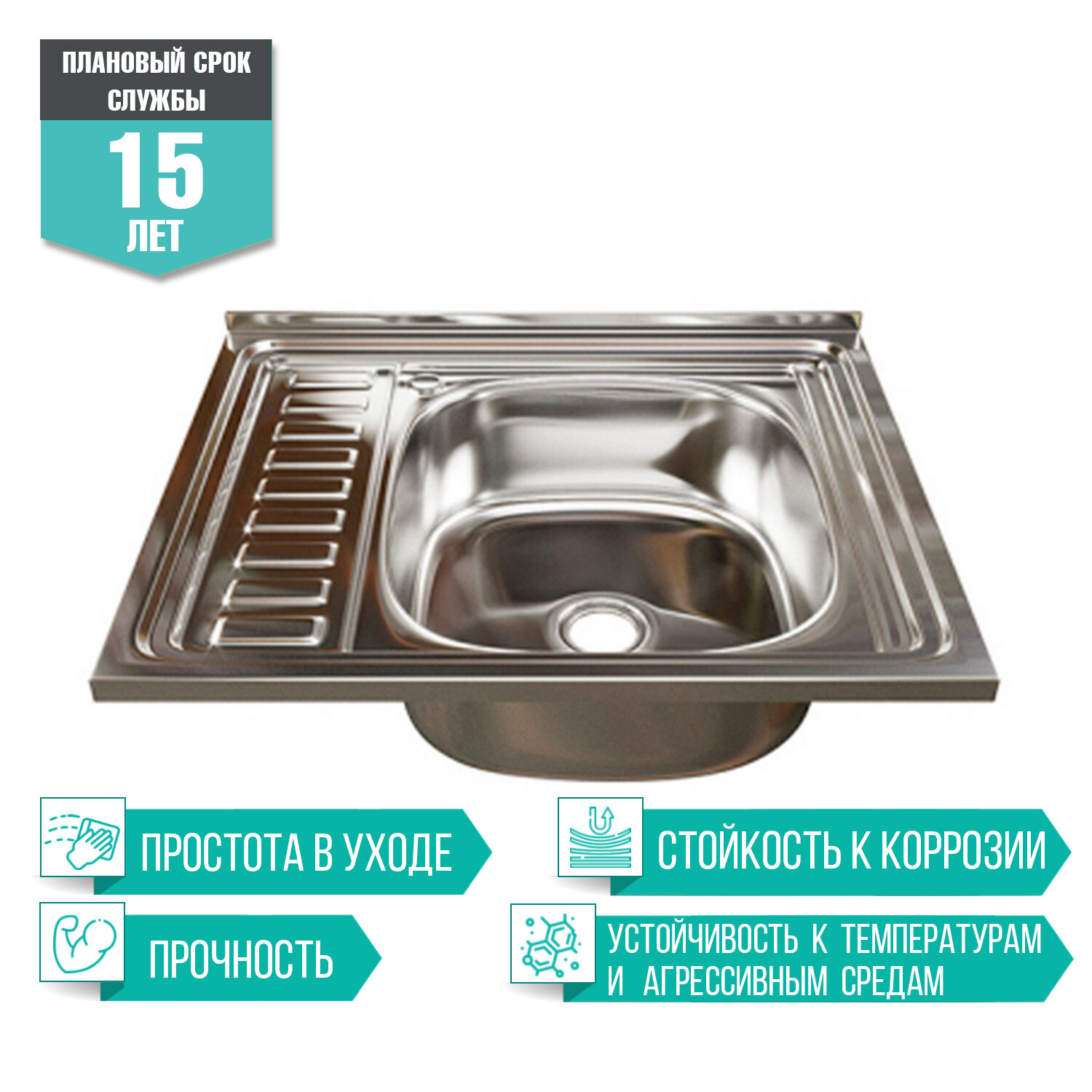 Накладная кухонная мойка Mixline из нержавеющей стали прямоугольная 50х60 см выпуск 3 1/2 глубина 18 см крыло левое