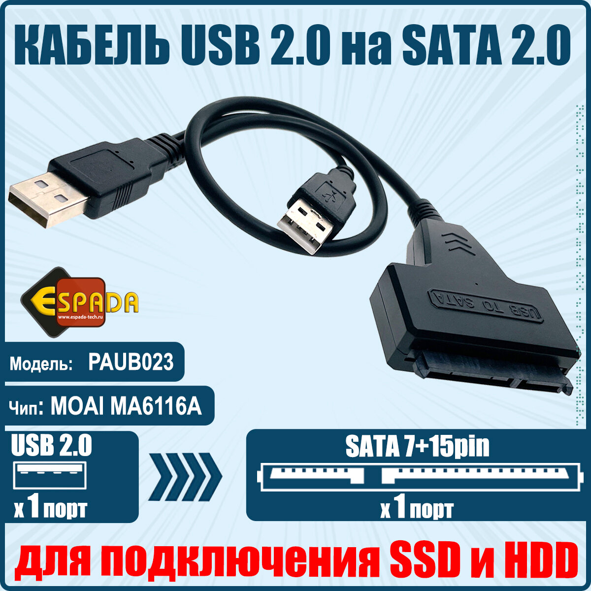 Кабель - адаптер USB to SATA Espada, модель: PAUB023 интересное: