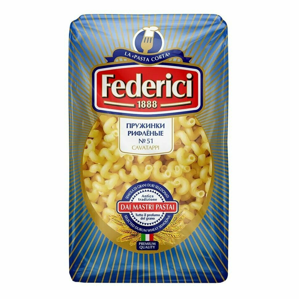 Макаронные изделия Federici Пружинки рифленые из твердых сортов пшеницы № 51, 3 кг