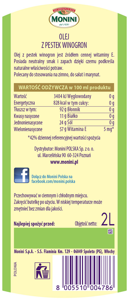 Масло виногр кост 2Л монини - MONINI