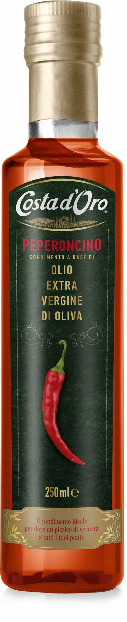 Масло оливковое COSTA D'ORO Extra Virgin нерафинированное высшего качества со вкусом и ароматом перца чили 250 мл стеклянная бутылка