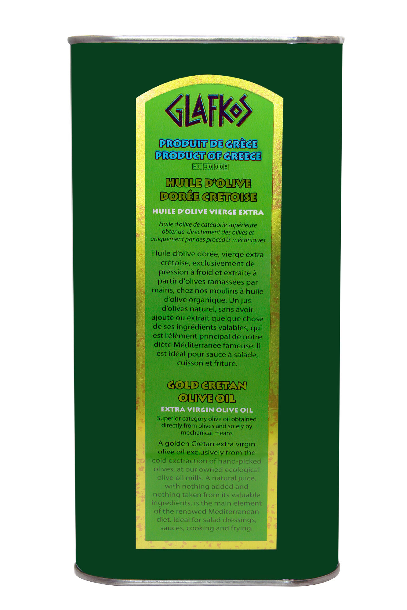 Оливковое масло первого холодного отжима высшего качества Glafkos Extra Virgin кислотность 0,1-0,8 %, ж/б, 5 литров, Греция