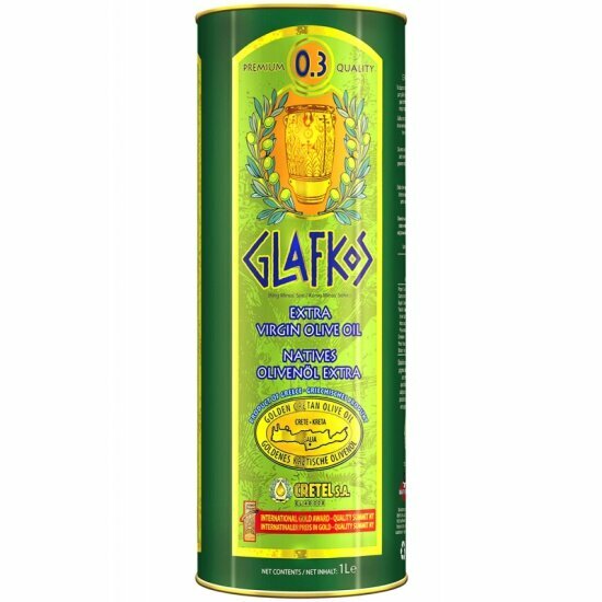 Купить Оливковое масло первого холодного отжима высшего качества Glafkos Extra Virgin, кислотность 0,3%, ж/б, 1 литр, Греция
