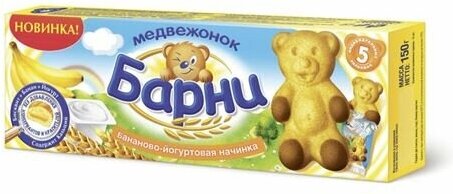 Барни медвежонок пирожное бисквитное с бананово-йогуртовой начинкой 150г интересное: