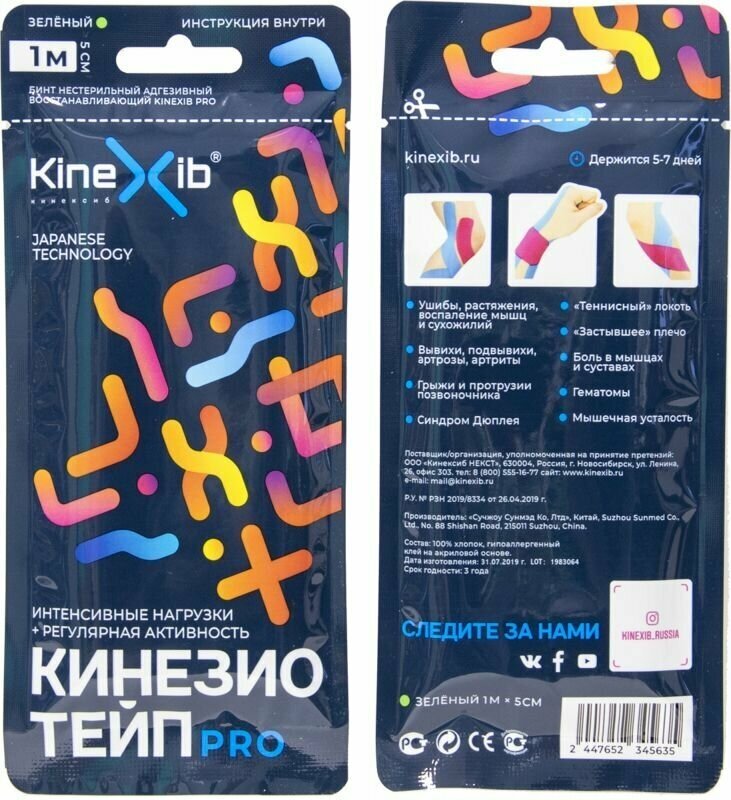 Кинезио тейп KineXib Pro (1 м х 5 см), зеленый