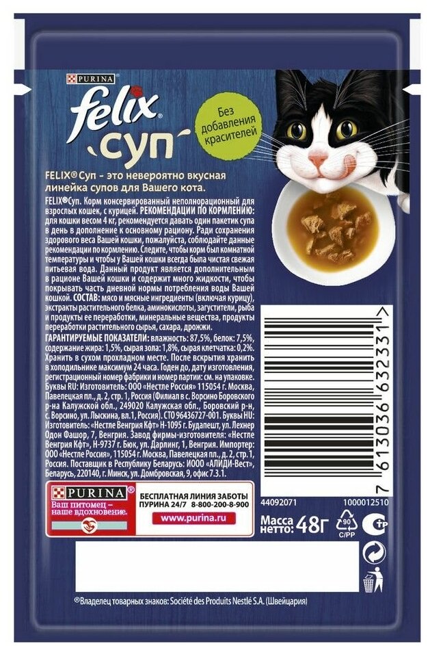 Купить Felix Паучи Суп для кошек с курицей Soup Chicken 123786681247912512522632 | Soup Chicken 0,048 кг 35038 (26 шт)