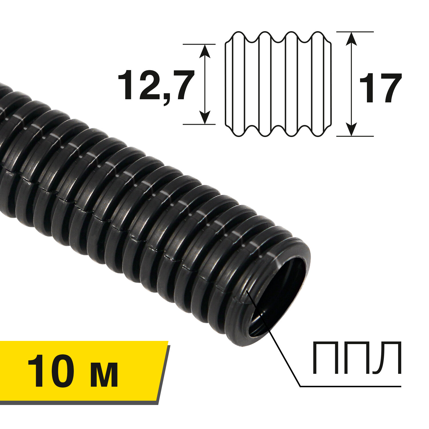 Труба гофрированная полипропилен REXANT 12.7 мм x 10 м 10 м черный