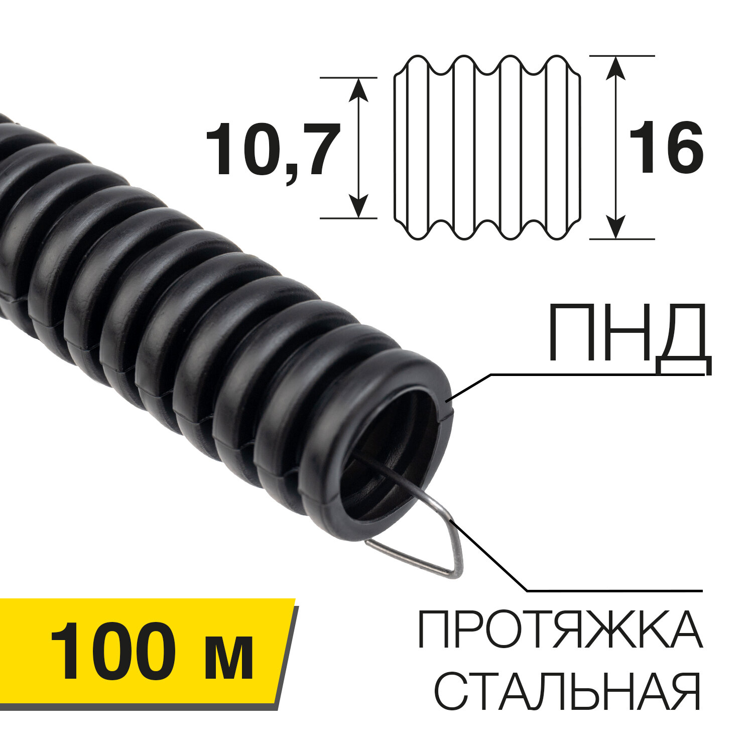 Труба гофрированная ПНД d16мм с протяжкой черн. (уп.100м) Rexant 28-0016-3 ( 1упак. )