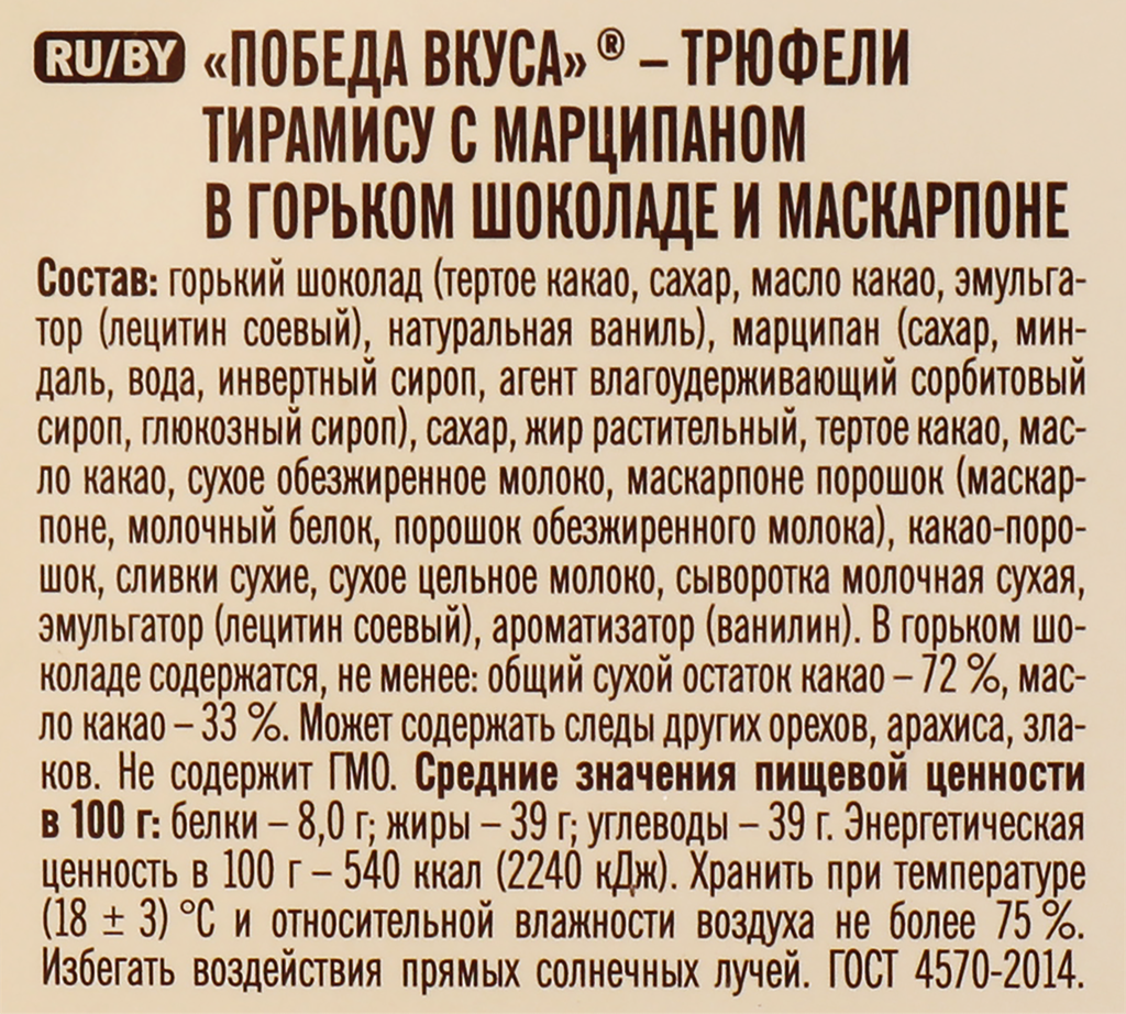 Набор конфет Победа трюфели тирамису с сыром маскарпоне 225 г интересное: