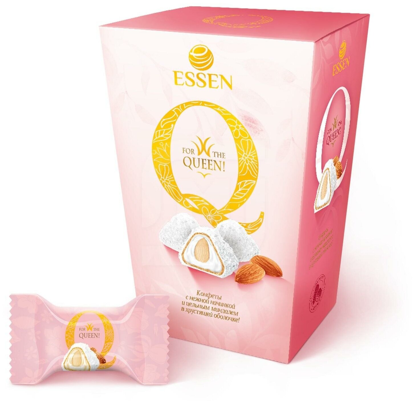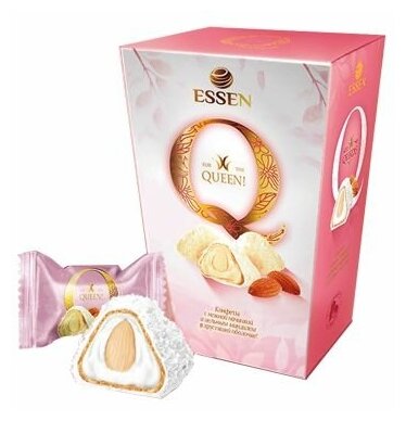 Конфеты в коробке Q (Кью), с цельным миндальным орехом, в кокосовой обсыпке, (ESSEN), 150 гр.