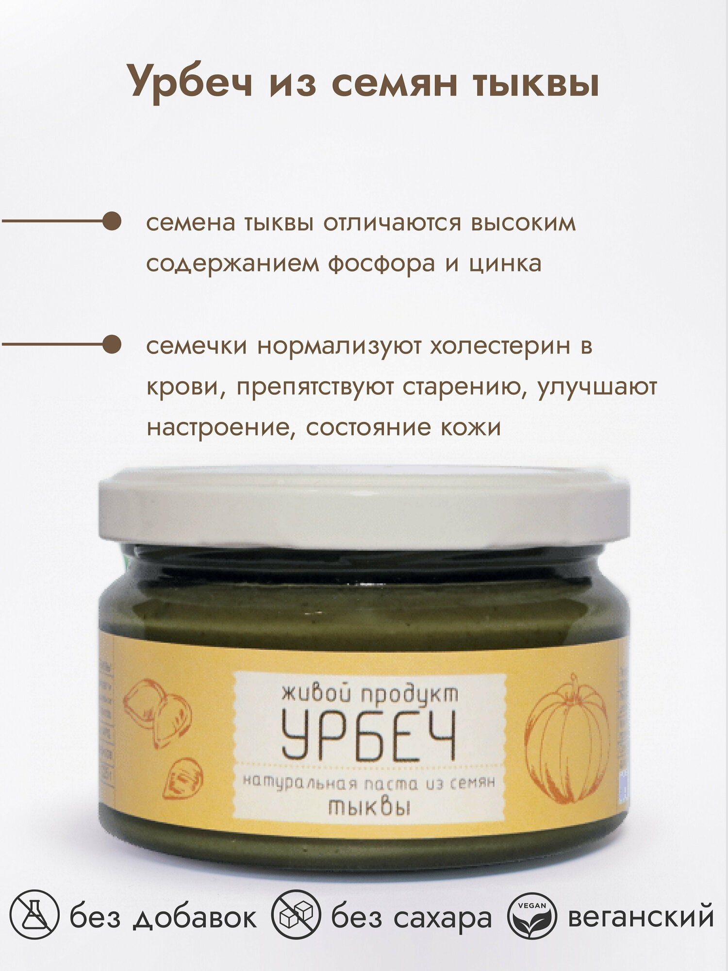 Урбеч из семян тыквы, 200 гр., Живой Продукт,(новый дизайн)