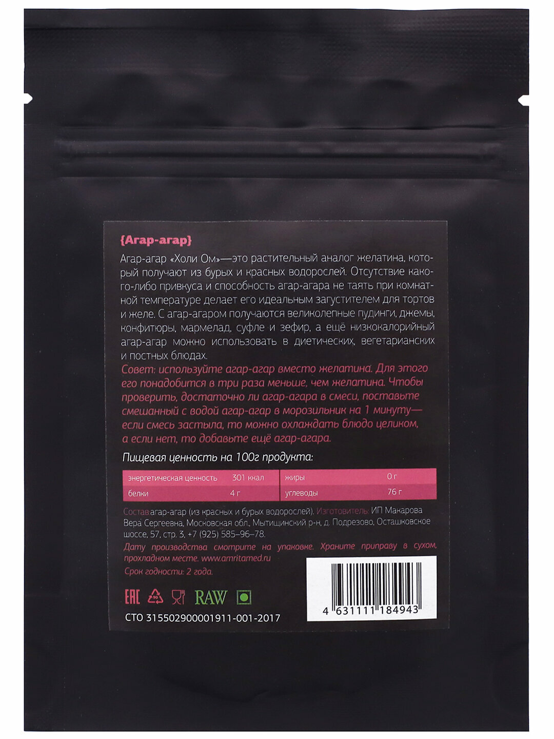 Агар Агар пищевой (Holy Om, 40 грамм)