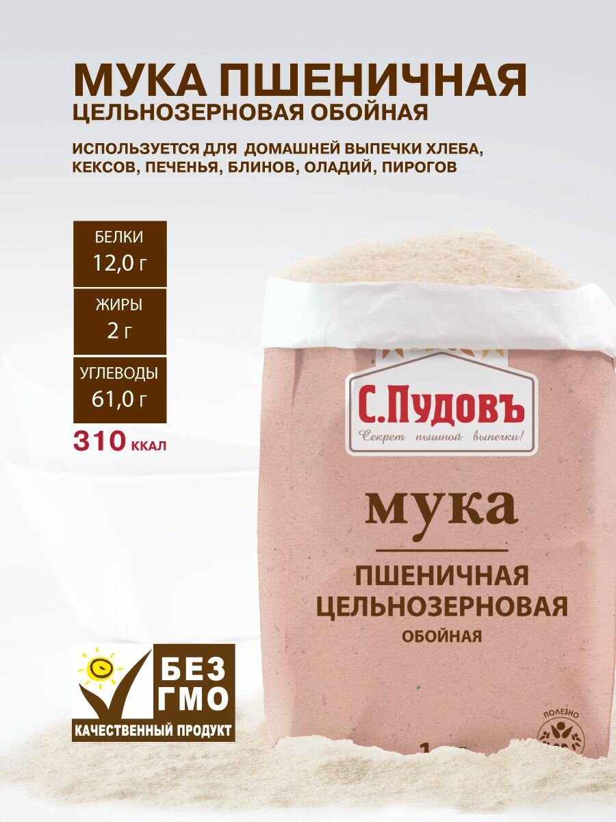 С.Пудовъ Мука пшеничная «С.Пудовъ» обойная цельнозерновая, 1 кг интересное: