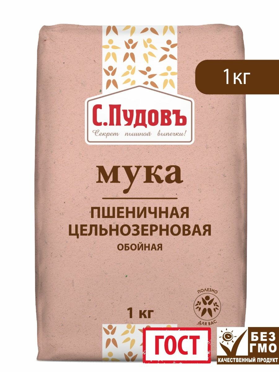 Купить С.Пудовъ Мука пшеничная «С.Пудовъ» обойная цельнозерновая, 1 кг