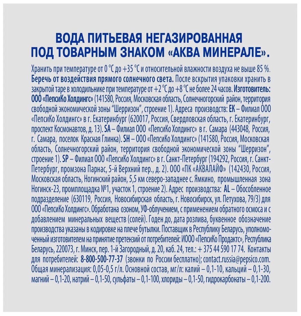 Ниже Вы можете прочитать отзывы на Вода питьевая Аква Минерале негазированная, ПЭТ (2,0л*6шт), ознакомится с подробными характеристиками, посмотреть интересные обзоры и фотографии на Вода питьевая Аква Минерале негазированная, ПЭТ (2,0л*6шт).