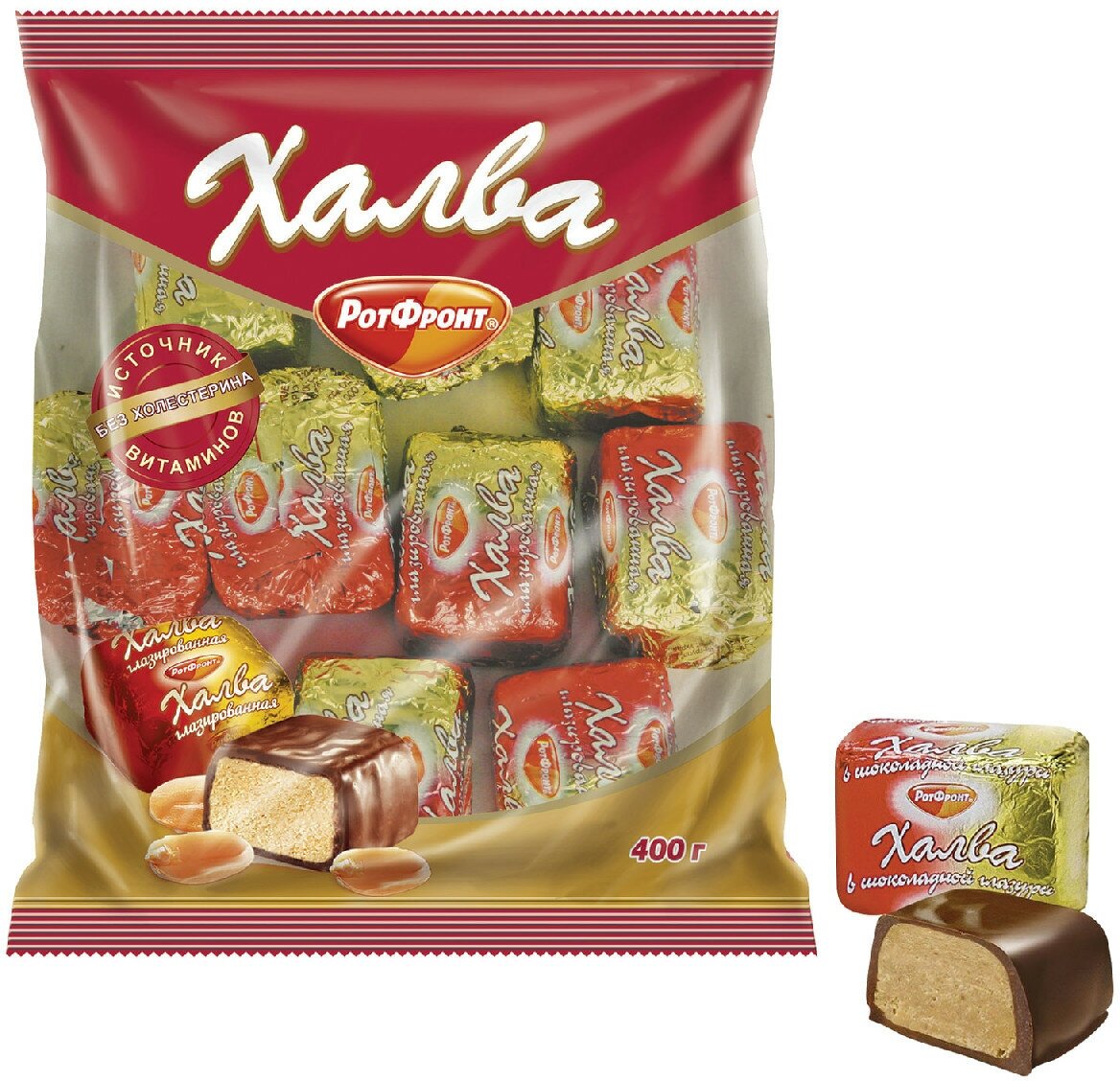 Халва РОТ фронт, в шоколаде, 400 г, пакет, РФ07360 В комплекте: 1шт.