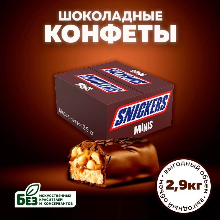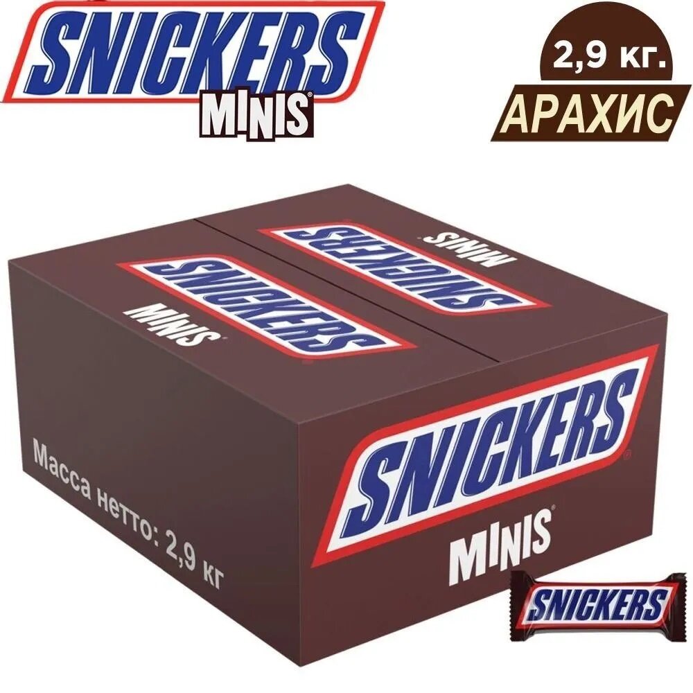 Конфеты шоколадные Snickers Minis, орехи, карамель, 2.9 кг. Батончики Сникерс Мини