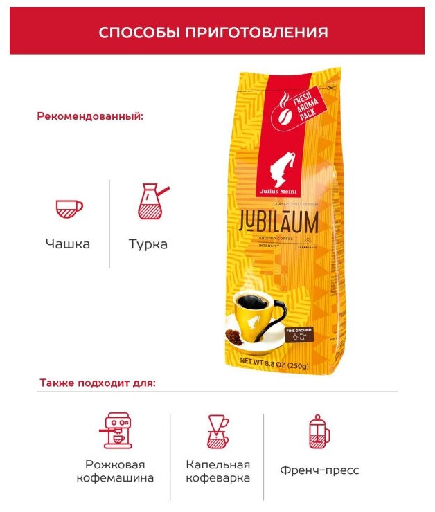 СохранитьКофе молотый Julius Meinl Jubilaum (Юлиус Майнл Юбилейный) 250 г, вакуумная упаковка интересное: