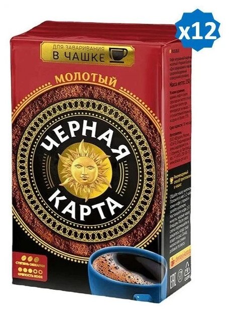 СохранитьКофе молотый Черная Карта для заваривания в чашке, 250 г х 12 шт интересное: