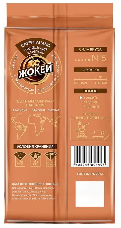 Жокей Café Italiano Кофе молотый арабика в вакуумной упаковке 100 г