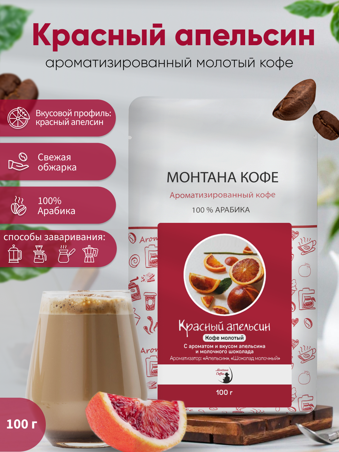 Кофе Монтана Кофе "Красный апельсин", ароматизированный , молотый, 100 гр интересное: