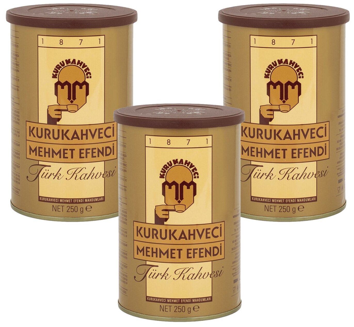 Турецкий кофе Kurukahveci Mehmet Efendi молотый, набор 3 банки по 250 гр.