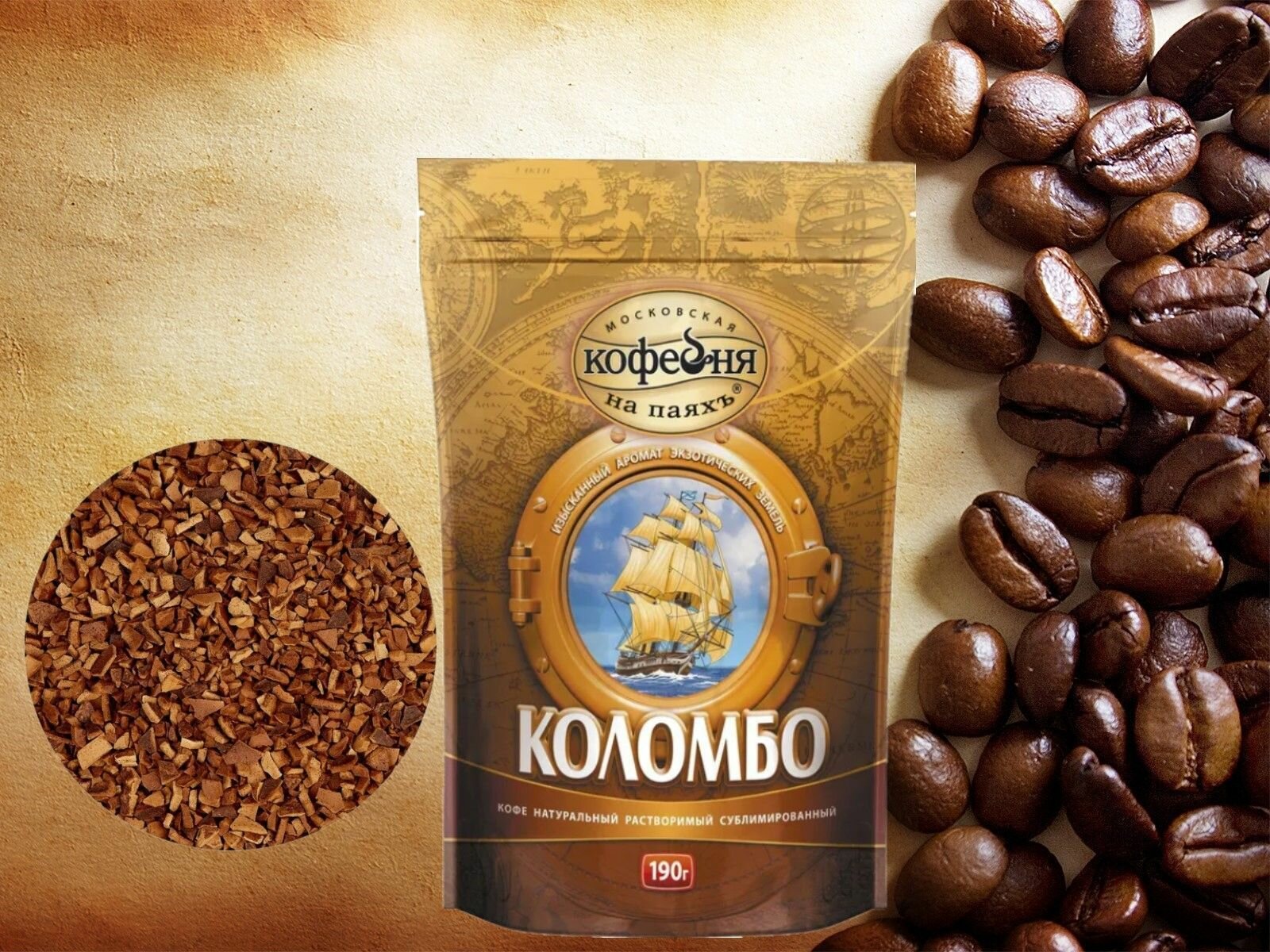 Московская кофейня на паяхъ Коломбо кофе рaстворимый, пакет 190 г