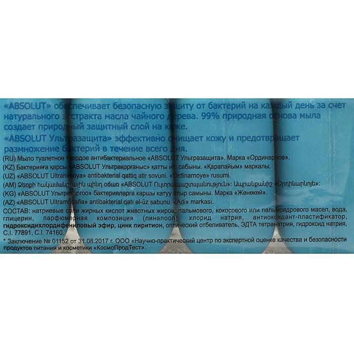 Absolut Мыло туалетное Absolut ABC Ультразащита, Антибактериальное 90 гр